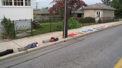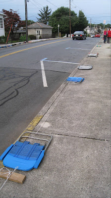 People put them out on the sidewalk to reserve a “spot” as early as noon on the Sunday before the Thursday parades. Kids walk to bus-stops and ride their bikes by them. No one moves them or would dream of stealing one, for this is a long and respected tradition. Welcome to small-town America at its best – with the respect of another’s property and your neighbor’s right to claim a good seat.