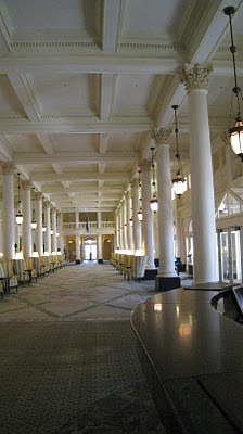 I was most impressed by the beautiful marble and tile underfoot, and the massive carved columns and majestic lights overhead. Furnishings are all coordinated and the designers touch is here, to be sure, but the workmanship that this building demanded and the fact that it took five years to build is what impressed me most. I’m not saying that I don’t stand in awe of the engineering needed to build shiny new superstructures that reach to the sky, but the buildings of old are the ones that tug at my heart. They speak of a sacrifice we can scarcely comprehend – what it must have taken in time and labor to build a grand hotel in the middle of the mountains, with the vision of catering to folks who would come here to relax and take to the waters.