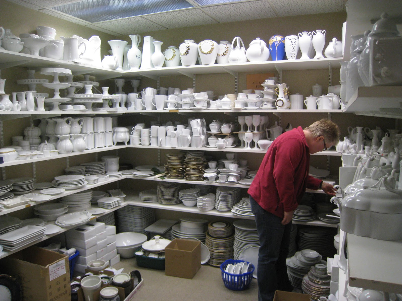 This is the overstock room – a treasure trove of vases, dishes, cups and platters.